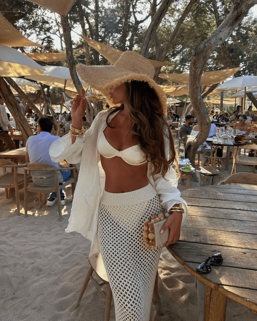 Incorporating stylish crochet pieces is a must. Crochet cover-ups are perfect for feeling the breeze while maintaining a fashionable appearance. Opt for a crochet dress or tunic in neutral tones like white, beige, or soft pastels to enhance your natural glow. The open-knit design allows for breathability and adds a touch of texture and sophistication to your outfit.