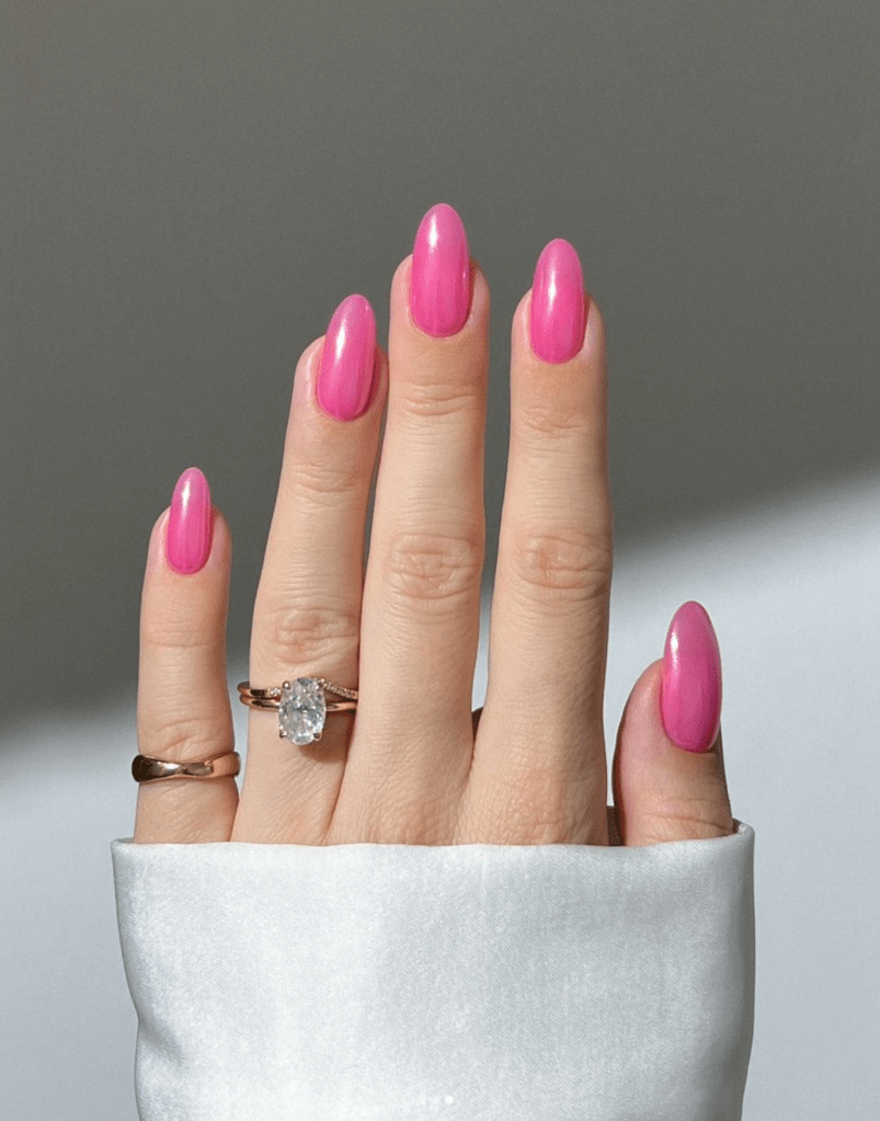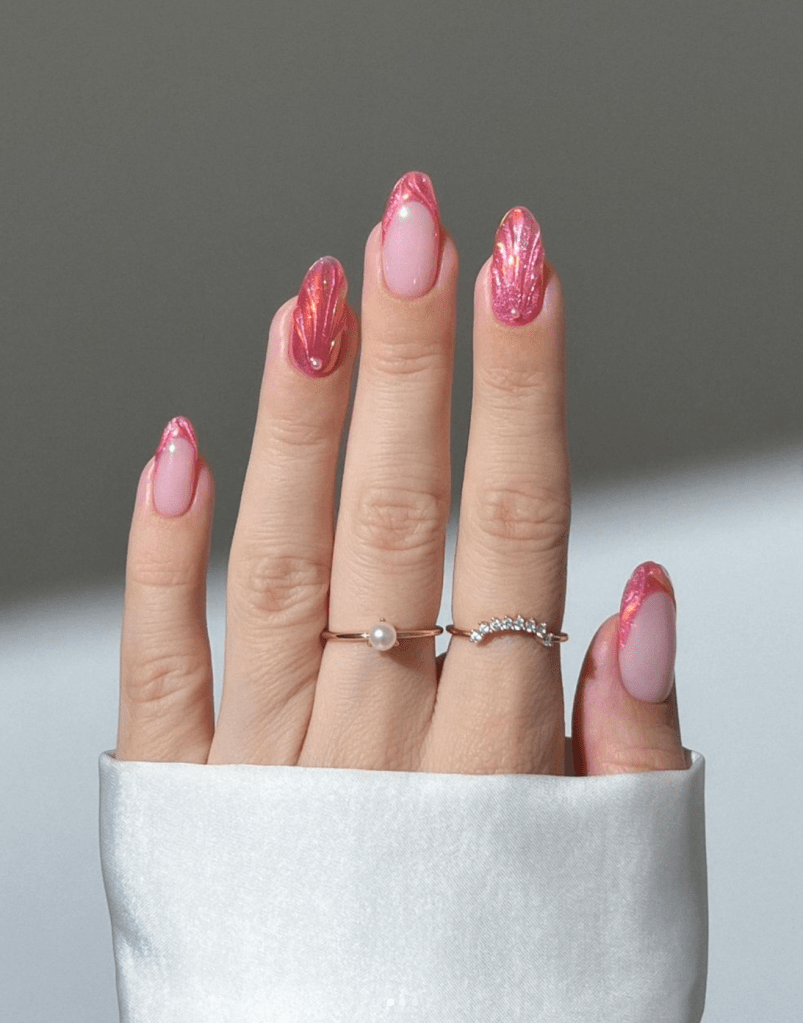 Capture seaside vibes with chrome shell nails that gleam with metallic pink hues. Inspired by the iridescence of seashells, these nails evoke a sense of coastal beauty and summer tranquility.