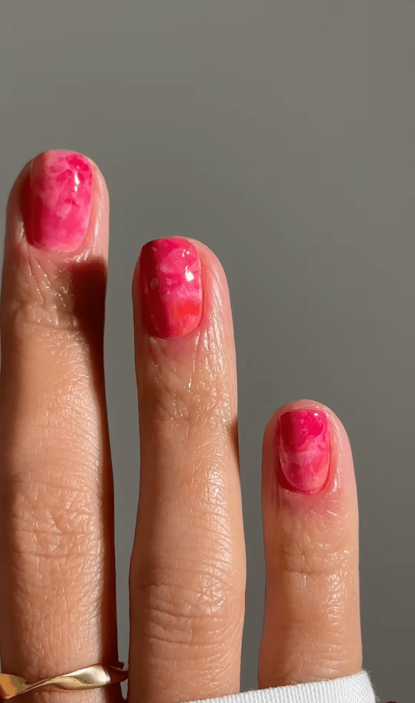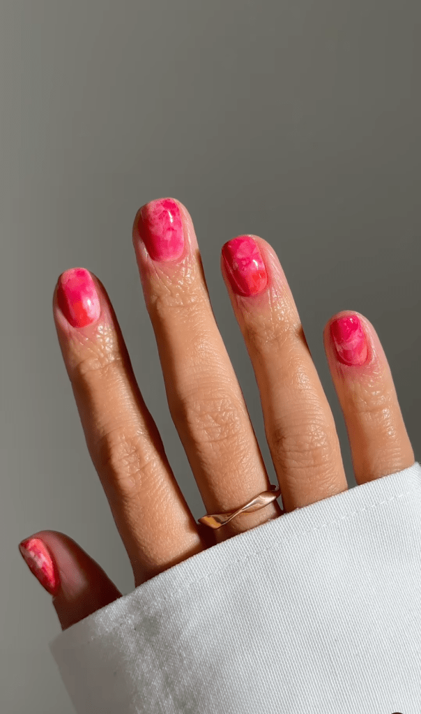 Achieve a juicy and translucent finish with pink jelly glaze nails. Perfect for summer, these nails offer a fresh and vibrant look that enhances your natural nail color with a glossy, gel-like shine.