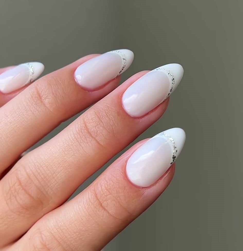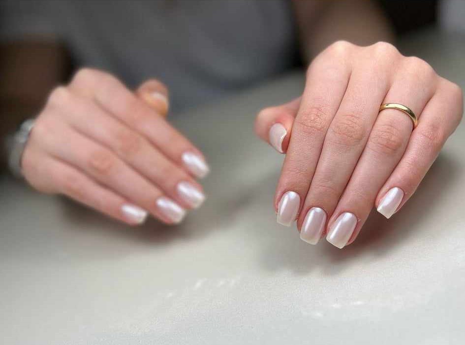 Use a pearl chrome nail powder and a milky white base to transform your nails into dazzling gems that shine as bright as diamonds.