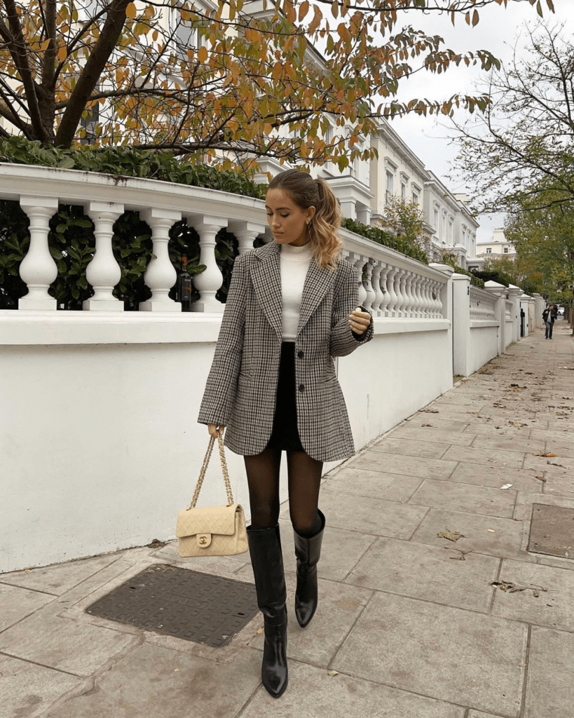 This versatile pattern is perfect for layering and adds a structured elegance to your fall wardrobe.