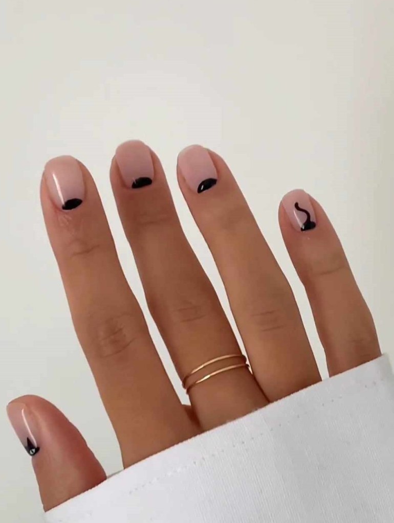 This subtle yet spooky design is perfect for anyone who loves Halloween but prefers a minimal aesthetic. A simple black spider is painted on a neutral or nude base, giving just the right amount of eerie charm without overwhelming your look. It’s a great way to embrace Halloween vibes while keeping things understated and chic.