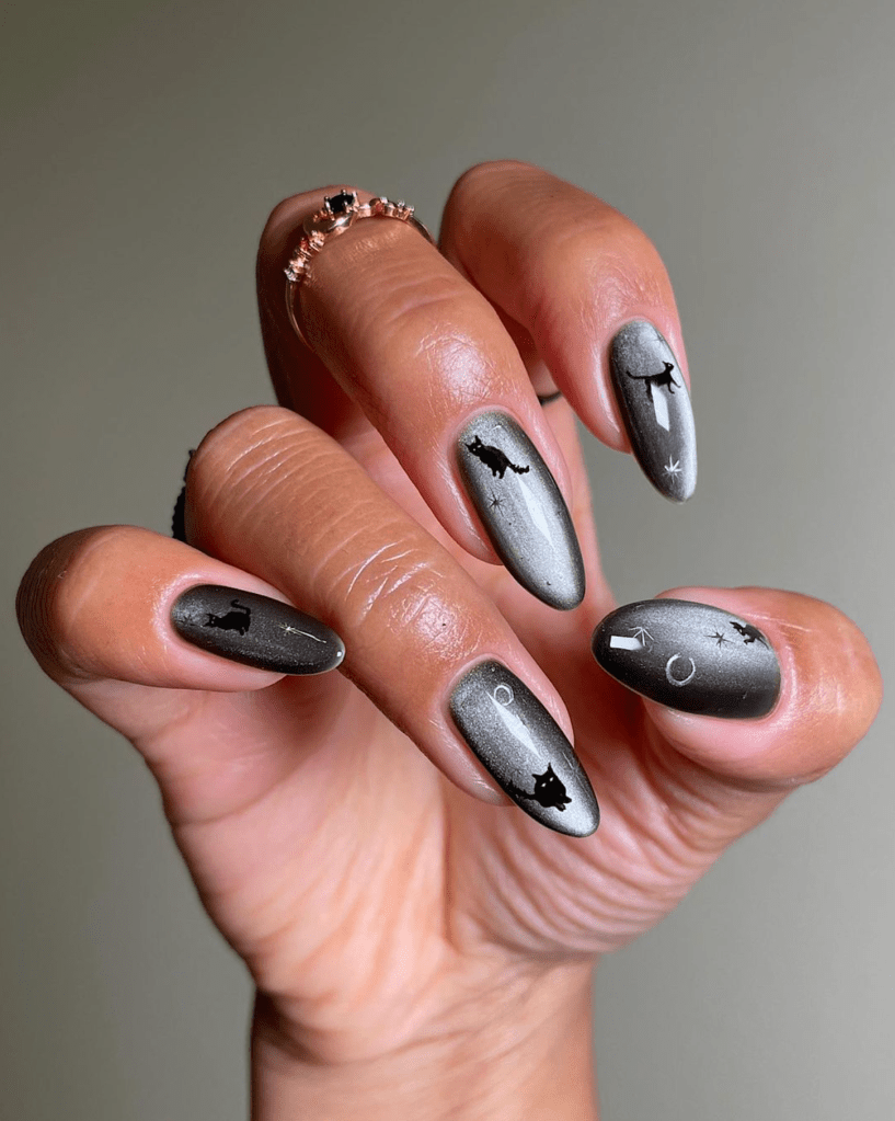 Salem Cat Halloween Nails