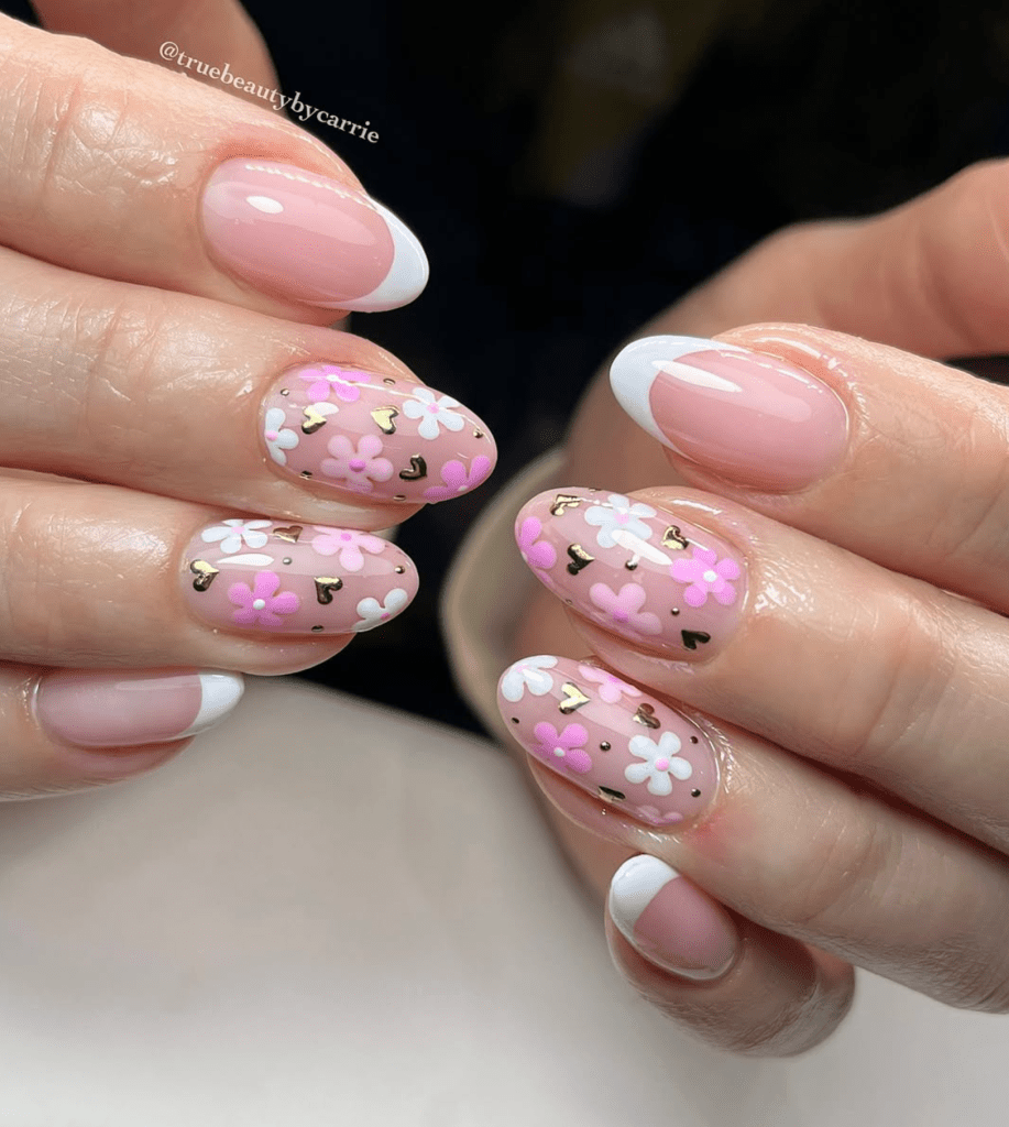 French Nails & Pink Flowers: A Classic with a Feminine Twist
