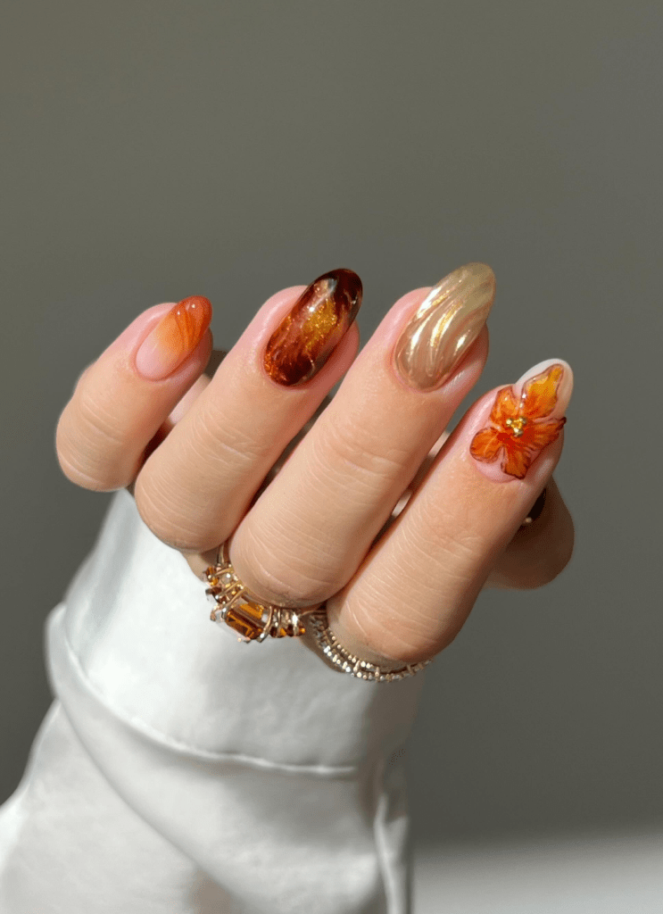 - Chic Fall Nail Art: Stunning Floral and Leafy Designs